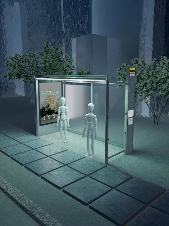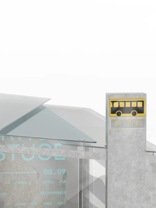 Det skaber et pålideligt transitpunkt for passagerer. Gennem miljøpsykologi og emotionelt design undersøger projektet, hvordan æstetik påvirker adfærd og tryghed. Buslæskærmen integrerer visuelle og sensoriske elementer som lys og materialevalg for at forbedre bymiljøet og fremme positiv adfærd.