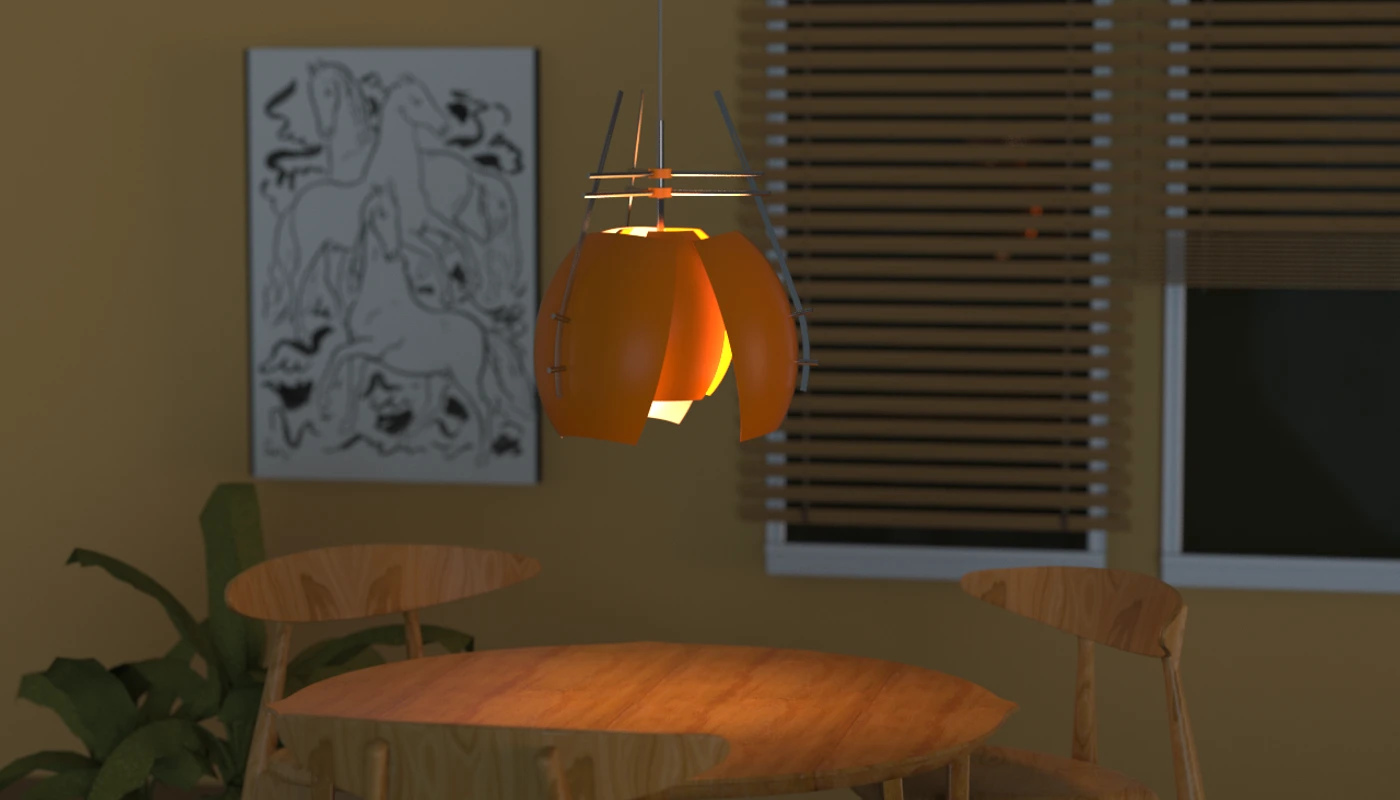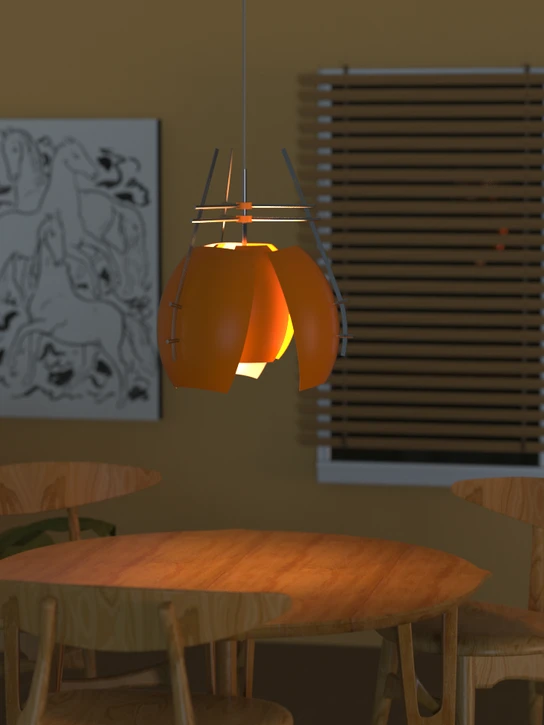 Projektet undersøger, hvordan en pendellampe kan skabe dynamisk belysning gennem mekanisk bevægelse af lampeskærmene. Designet er inspireret af tulipanen, både i form og farve, samtidig med at det tydeligt viser sine mekaniske komponenter.