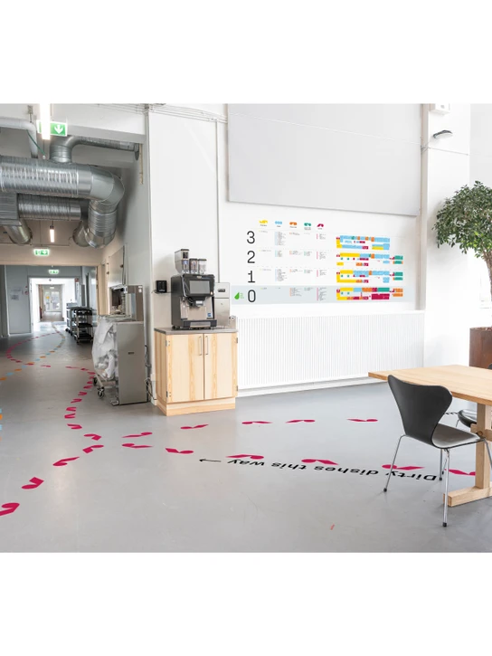 En form- og farvedrevet wayfinding-installation til Designskolen Kolding