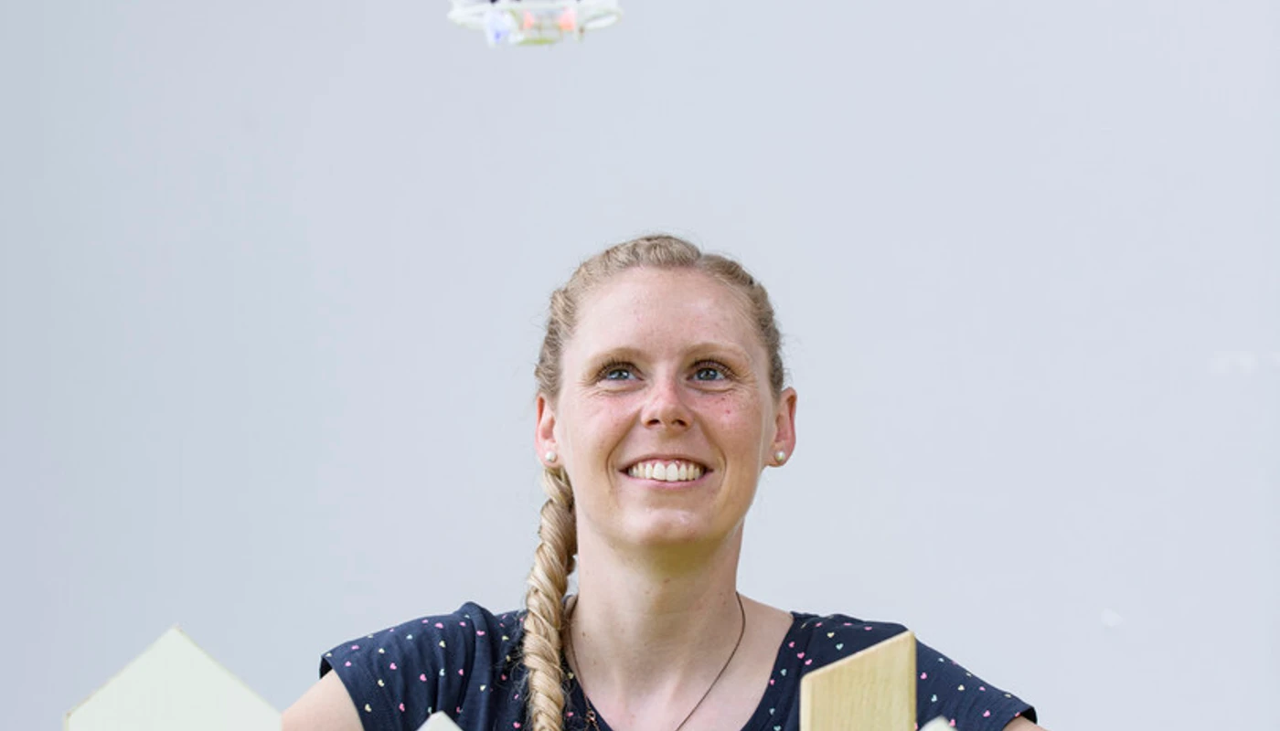 Ann-Kathrin Scholtyssek mestrer selv kunsten at navigere den flyvende robot og gør op med den monotone envejsundervisning. Hun leger de nye kundskaber ind i pilotaspiranterne med en modelby, vindsimulering og læringsspil om den teoretiske viden.