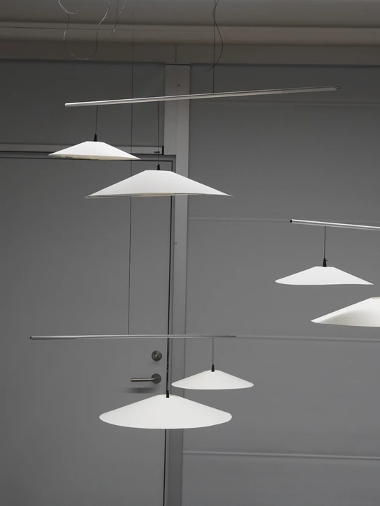 Created with libraries and large spaces in mind, the lamp is designed to cultivate a calm and focused atmosphere in the room it inhabits. Through slow, deliberate movements and a simple, balanced form, it creates a tranquil environment without overwhelming its surroundings. The lamp is meant to spark quiet curiosity—encouraging viewers to pause and linger in its presence.