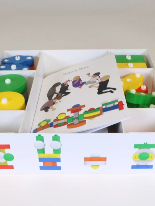 Shape & Share er et legetøj til 4-årige, som skal bruges i børnehaver og har til formål at udvikle børnenes færdigheder i forhold til at dele, forhandle og kommunikere. Ved at anvende en børnecentreret tilgang har designeren formået at designe et legetøj, der kommunikerer sproget gennem leg, så børn fra forskellige kulturer og baggrunde, der ikke taler det samme sprog, kan lege sammen. Og ved at basere designet på legesessioner med børn og kun bruge deres indsigter viser projektet, hvordan et legetøj kan designes, så det i sandhed afspejler børnenes behov og interesser.